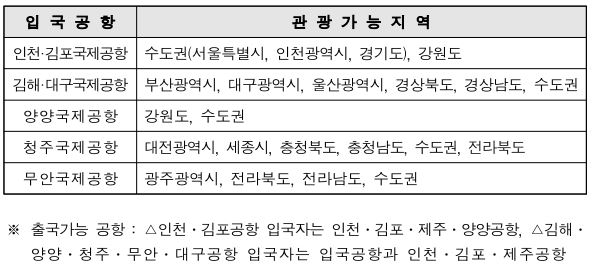 ※ 단체여행객 무단이탈자 발생 정도에 따라 행정제재, 환승안내도우미 운영에 동의, 제주공항 이외의 공항(인천․김포․김해․대구․청주․양양․무안)으로 입국